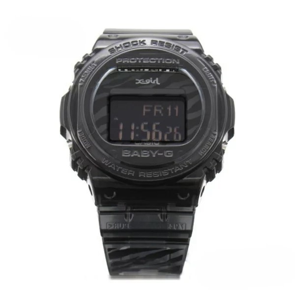 Casio Baby-G X-girl BGD-570XG-8JR - ladies watch manufactured by Casio. It is equipped with Japanese quartz movement and 3290 calibre. Polymer case of round shape. Case dimensions are 43 mm. in diameter and 12.9 mm. in thickness. The dial of this Casio watch is lcd. Display type: digital. This timepiece has mineral glass. Polymer band, band color: black, gray. 200 m. water resistance. The watch is from Baby-G collection. The following features are equipped: world time, chronograph, countdown timer, alarm, perpetual calendar, backlight, date, day, month.