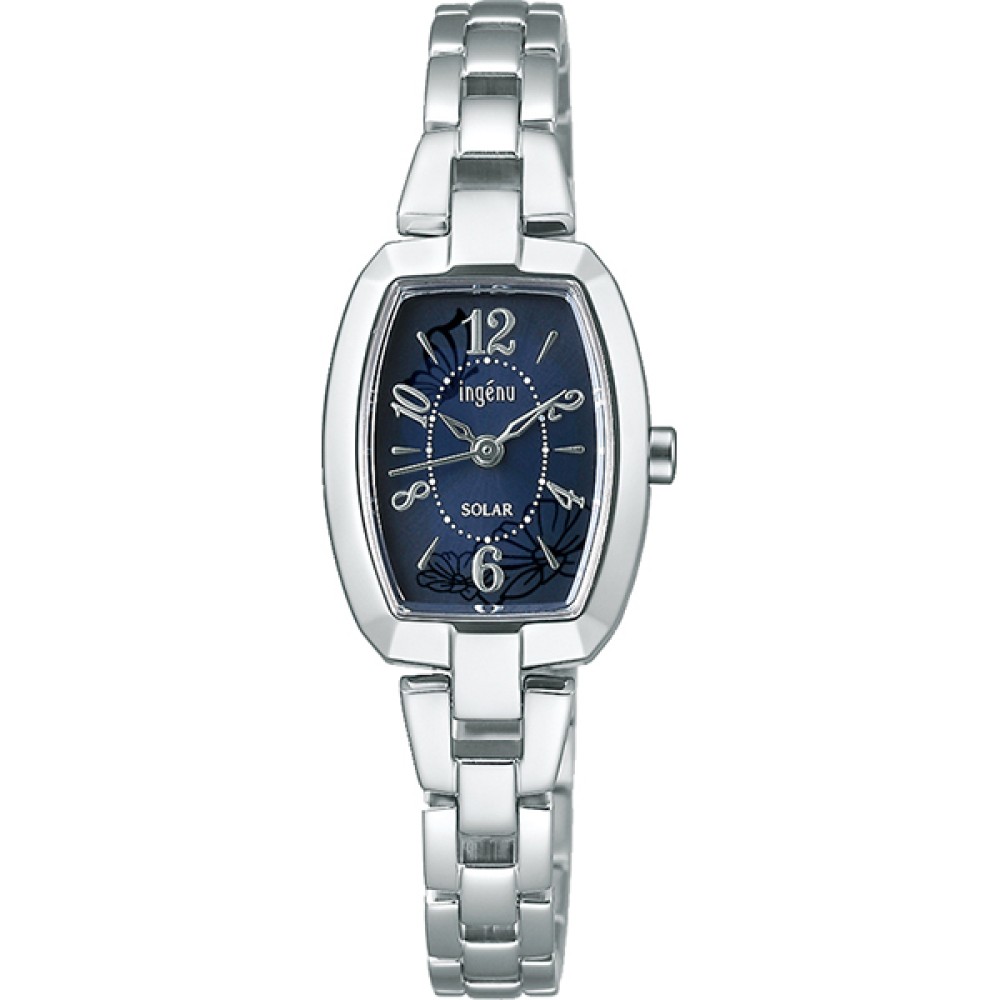 Seiko Alba ingenu AHJD425 - ladies watch manufactured by Seiko. It is equipped with Japanese solar quartz movement and V117 calibre. Stainless steel case of tonneau shape. Case dimensions are 19.5 mm. in diameter and 6.8 mm. in thickness. The dial of this Seiko watch is blue. Display type: analog. This timepiece has hardlex glass. Stainless steel band, band color: silver. 50 m. water resistance. The watch is from Alba collection.