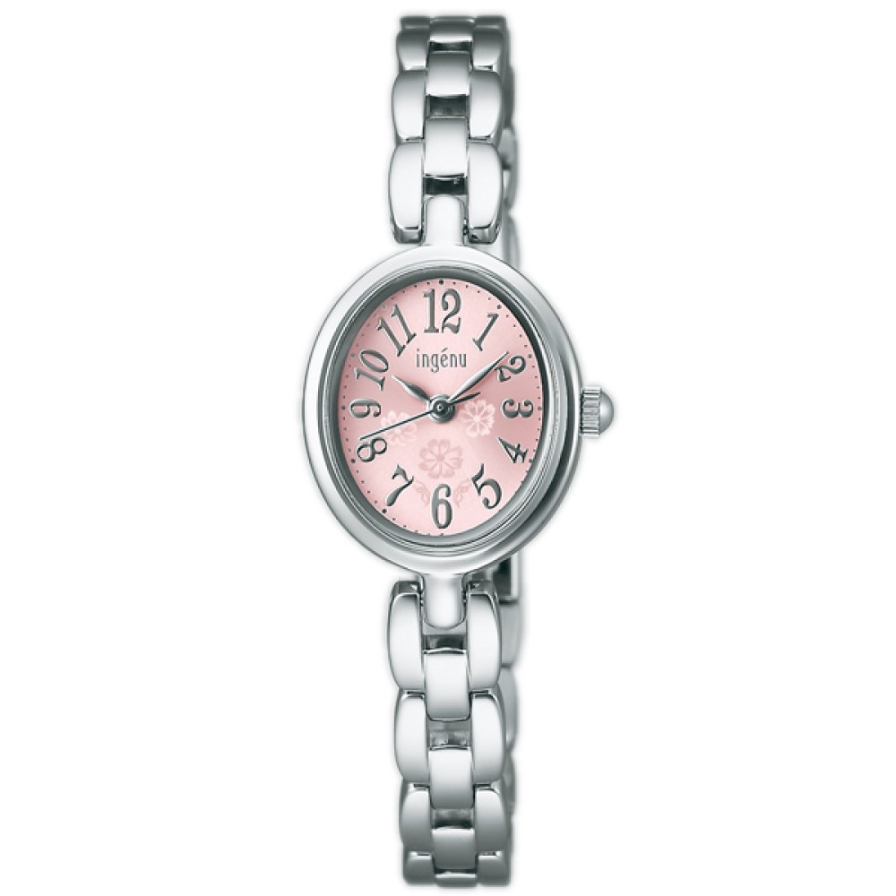 Seiko Alba ingenu AHJK402 - ladies watch produced by Seiko. It is equipped with Japanese quartz movement and VX51 calibre. Stainless steel case of oval shape. Case dimensions are 19.5 mm. in diameter and 6.6 mm. in thickness. The dial of this Seiko watch is pink. Display type: analog. This timepiece has hardlex glass. Stainless steel band, band color: silver. 30 m. water resistance. The watch is from Alba collection.