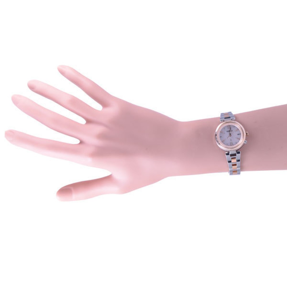 Seiko Lukia SSQV014 - ladies watch made by Seiko. It is equipped with Japanese solar quartz movement and 1B25 calibre. Titanium, hard coating, gold plated case of round shape. Case dimensions are 28.3 mm. in diameter and 8.8 mm. in thickness. The dial of this Seiko watch is pink. Display type: analog. This timepiece has sapphire, super clear coating glass. Titanium, hard coating, gold plated band, band color: silver, gold. 100 m. water resistance. The watch is from Seiko Lukia collection. The following features are equipped: antimagnetic, date, perpetual calendar, radio controlled, world time, glowing hands.