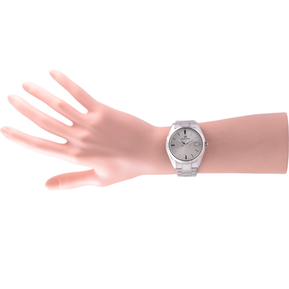 Grand Seiko SBGV229 - men's watch manufactured by Seiko. It has Japanese quartz movement and 9F82 calibre. Titanium case of round shape. Case dimensions are 40 mm. in diameter and 10 mm. in thickness. The dial of this Grand Seiko watch is silver. Display type: analog. This timepiece has sapphire, antireflection coating glass. Titanium band, band color: silver. 100 m. water resistance. The watch is from Heritage collection. The following features are equipped: antimagnetic, date.