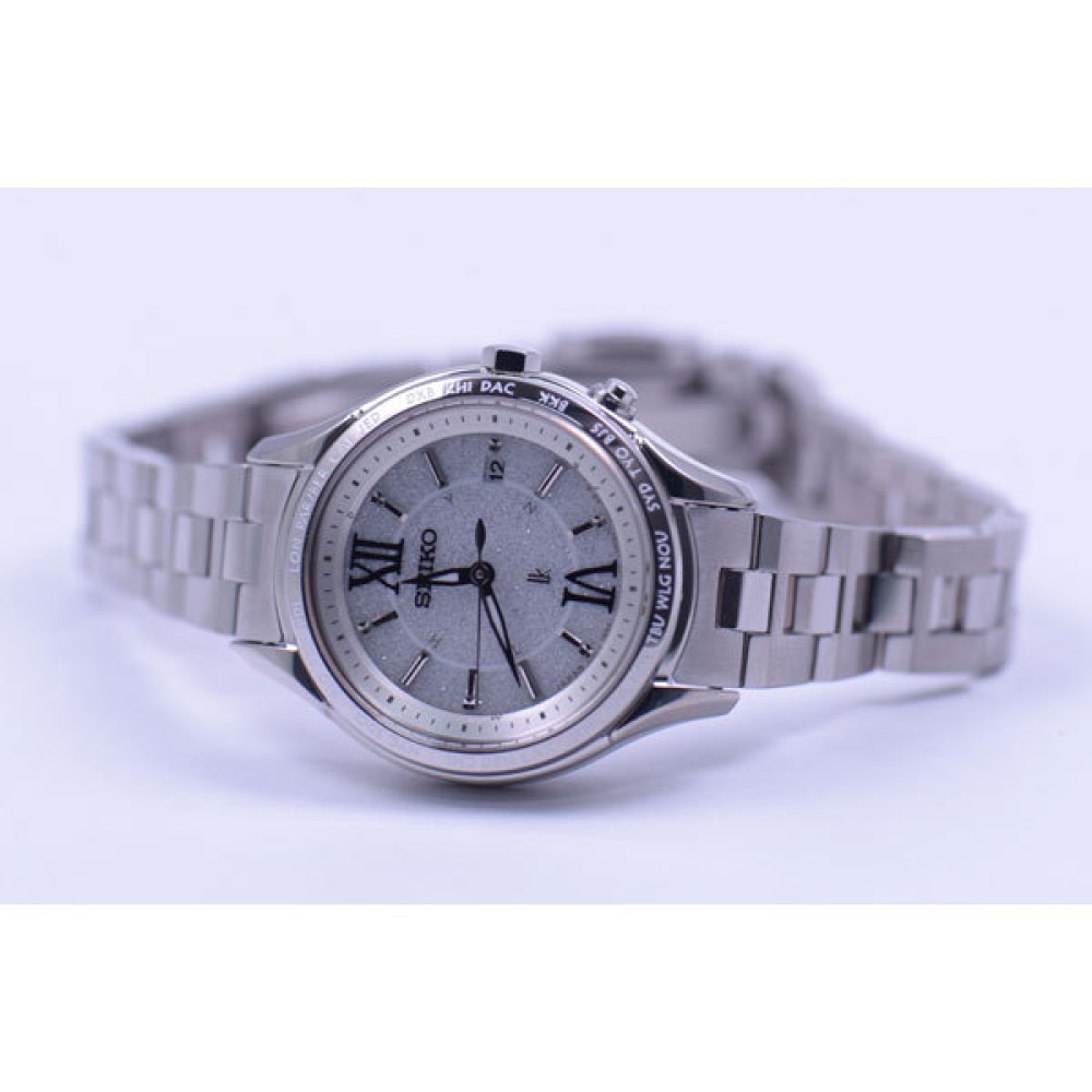 Seiko Lukia SSVV011 - ladies watch made by Seiko. It has Japanese solar quartz movement and 1B25 calibre. Stainless steel, hard coating case of round shape. Case dimensions are 28.3 mm. in diameter and 8.7 mm. in thickness. The dial of this Seiko watch is silver. Display type: analog. This timepiece has sapphire, super clear coating glass. Stainless steel band, band color: silver. 100 m. water resistance. The watch is from Seiko Lukia collection. The following features are equipped: antimagnetic, date, perpetual calendar, world time, glowing hands, radio controlled.