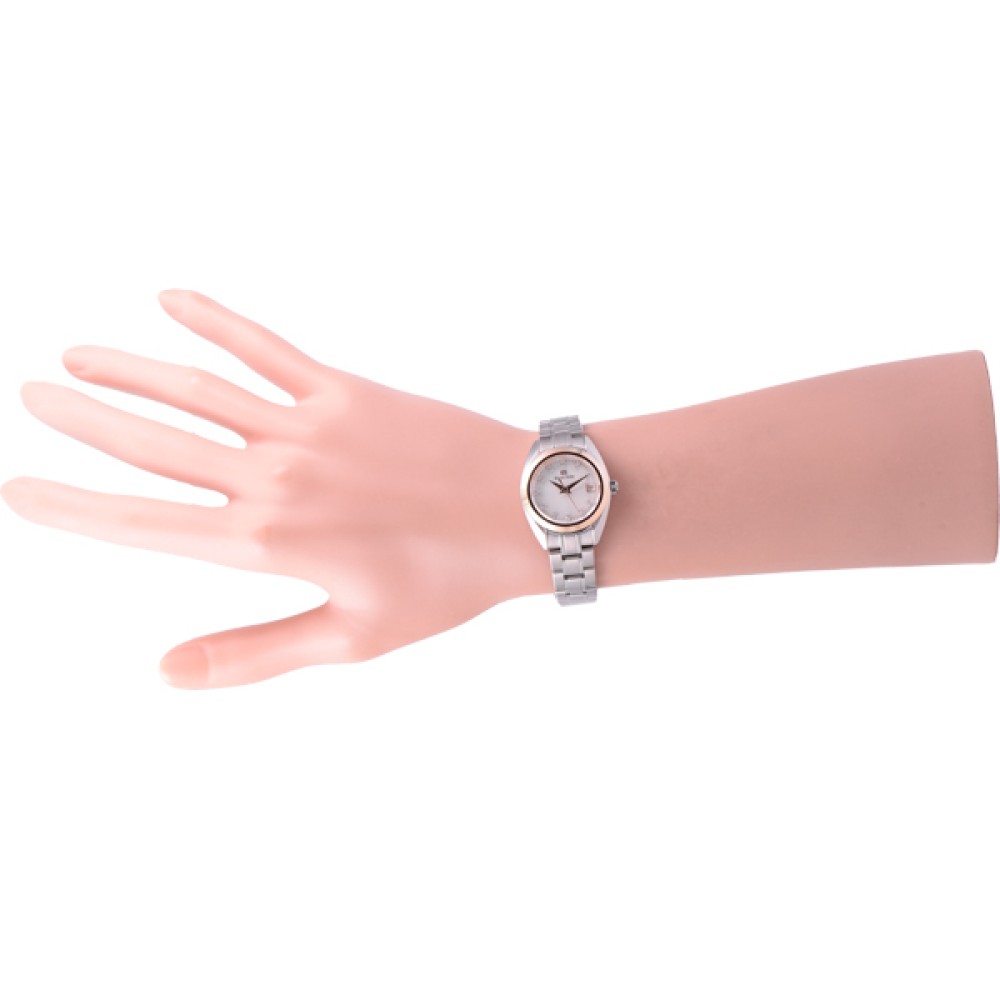 Grand Seiko STGF316 - ladies watch made by Seiko. It has Japanese quartz movement and 4J52 calibre. Titanium, gold case of round shape. Case dimensions are 26 mm. in diameter and 9 mm. in thickness. The dial of this Grand Seiko watch is white. Display type: analog. This timepiece has sapphire, antireflection coating glass. Titanium band, band color: silver. 100 m. water resistance. The watch is from Grand Seiko Elegance collection. The following features are equipped: antimagnetic, date, diamond set.