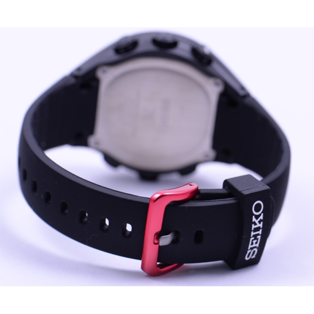 Seiko Prospex SBEK003 - men's watch made by Seiko. It is equipped with Japanese solar quartz movement and S810 calibre. Polymer, aluminum case of round shape. Case dimensions are 44.9 mm. in diameter and 12.5 mm. in thickness. The dial of this Seiko watch is lcd. Display type: digital. This timepiece has hardlex glass. Polymer band, band color: black. 100 m. water resistance. The watch is from Seiko Prospex collection. The following features are equipped: date, day, chronograph, alarm, perpetual calendar, altimeter, barometer, thermometer, compass, backlight, bluetooth.