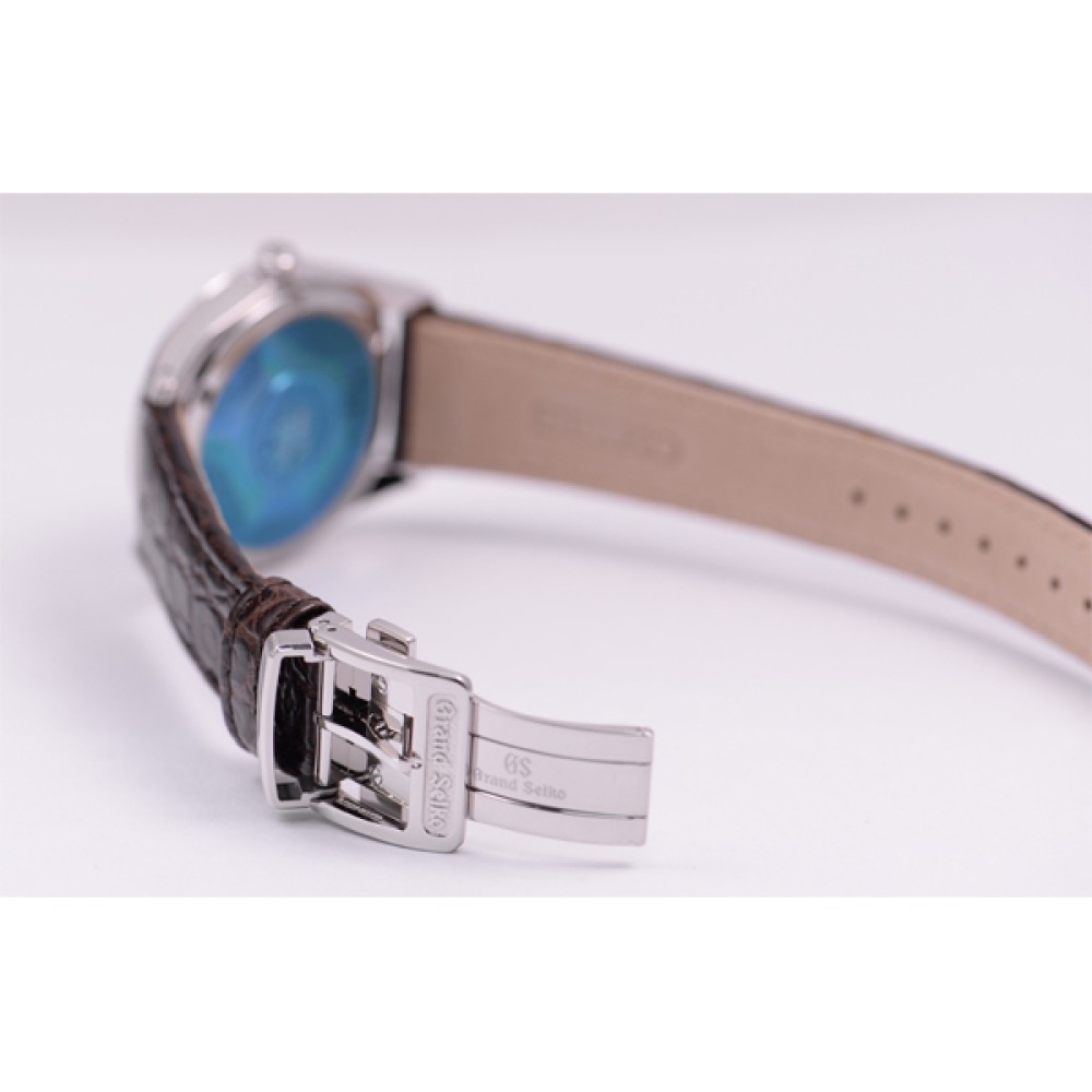 Grand Seiko SBGX297 - men's watch manufactured by Seiko. It is equipped with Japanese quartz movement and 9F62 calibre. Stainless steel case of round shape. Case dimensions are 37 mm. in diameter and 10 mm. in thickness. The dial of this Grand Seiko watch is blue. Display type: analog. This timepiece has sapphire, antireflection coating glass. Crocodile leather band, band color: brown. 100 m. water resistance. The watch is from Heritage collection. The following features are equipped: antimagnetic, date.