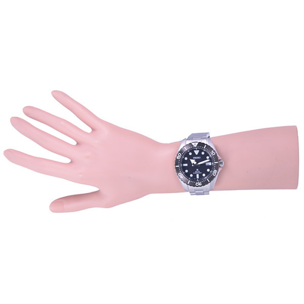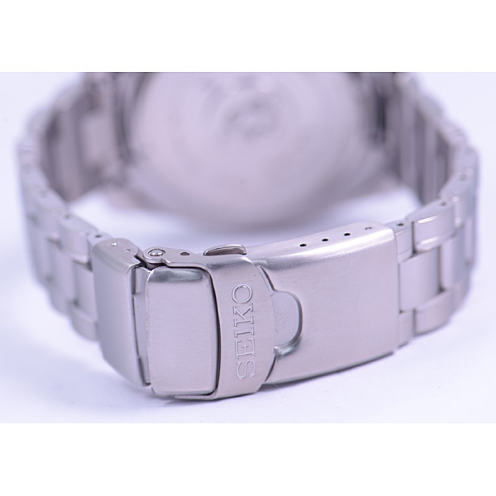 Seiko Prospex SBDJ013 - men's watch made by Seiko. It has Japanese solar quartz movement and V157 calibre. Titanium, hard coating case of round shape. Case dimensions are 44.1 mm. in diameter and 12.4 mm. in thickness. The dial of this Seiko watch is black. Display type: analog. This timepiece has hardlex glass. Titanium, hard coating band, band color: silver. 200 m. water resistance. The watch is from Seiko Prospex collection. The following features are equipped: antimagnetic, date, glowing hands, glowing markers, screw-down crown.