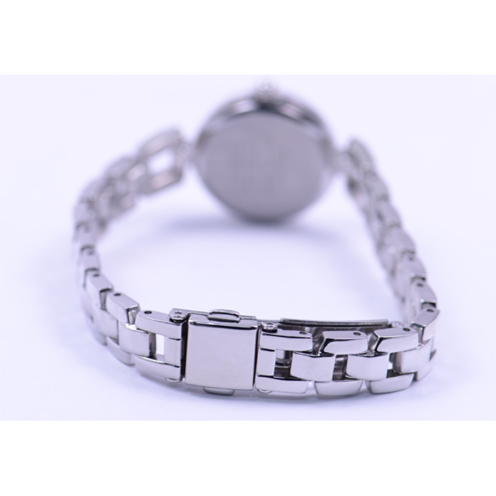 Seiko Selection SWFA151 - ladies watch made by Seiko. It is equipped with Japanese solar quartz movement and V117 calibre. Stainless steel case of round shape. Case dimensions are 23.6 mm. in diameter and 6.6 mm. in thickness. The dial of this Seiko watch is white. Display type: analog. This timepiece has hardlex glass. Stainless steel band, band color: silver. 100 m. water resistance. The watch is from Seiko Selection collection. The following features are equipped: antimagnetic.