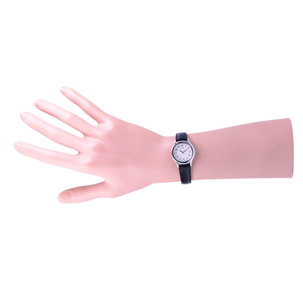 Seiko Selection STTC005 - ladies watch produced by Seiko. It has Japanese quartz movement and 7N01 calibre. Stainless steel case of round shape. Case dimensions are 23.9 mm. in diameter and 5.7 mm. in thickness. The dial of this Seiko watch is white. Display type: analog. This timepiece has hardlex glass. Leather band, band color: black. 30 m. water resistance. The watch is from Seiko Selection collection.