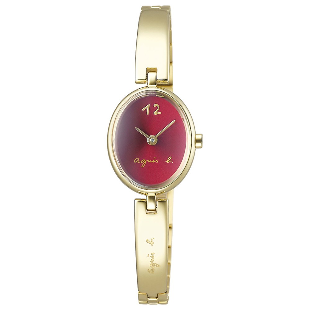 Seiko agnes.b Marcello FCSK918 - ladies watch produced by Seiko. It is equipped with Japanese quartz movement and VC00 calibre. Stainless steel, gold plated case of oval shape. Case dimensions are 18 mm. in diameter and 7.6 mm. in thickness. The dial of this Seiko watch is red. Display type: analog. This timepiece has hardlex glass. Stainless steel, gold plated band, band color: gold. 50 m. water resistance. The watch is from agnes b. collection.