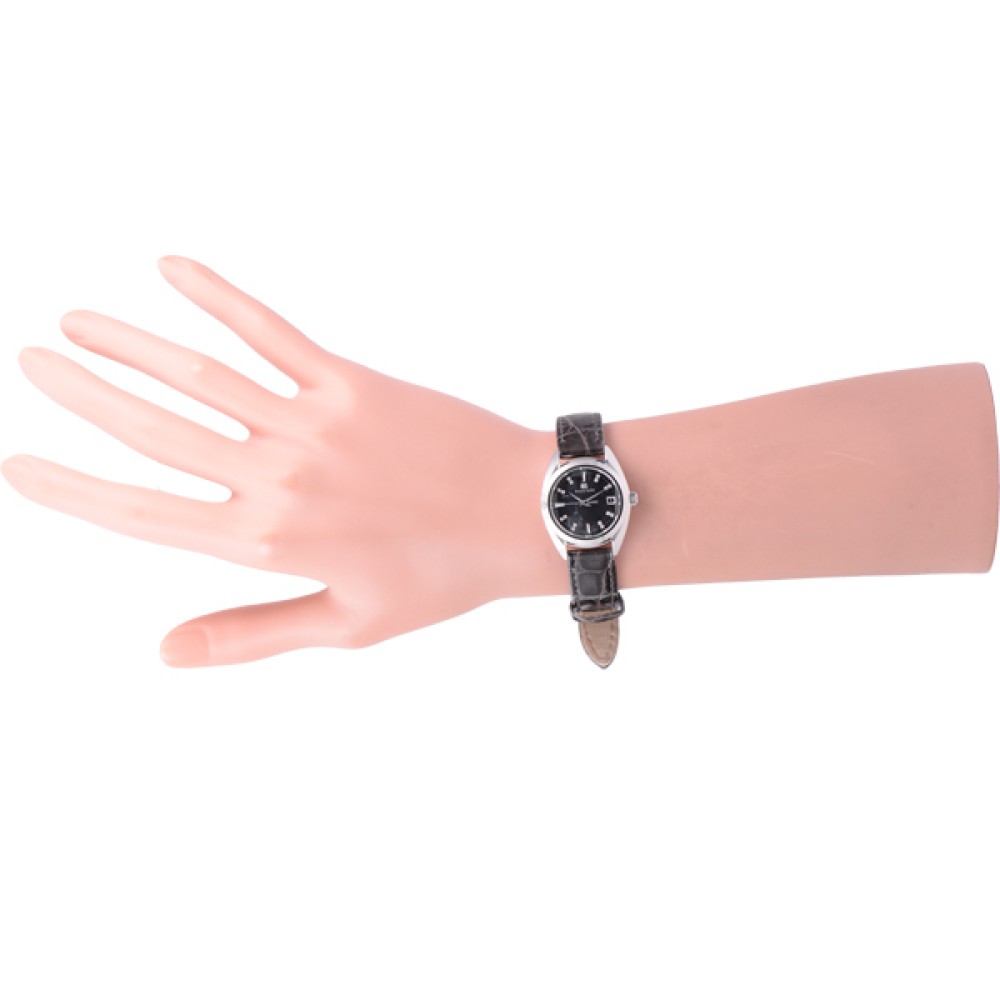 Grand Seiko STGF289 - ladies watch made by Seiko. It has Japanese quartz movement and 4J52 calibre. Stainless steel case of round shape. Case dimensions are 26 mm. in diameter and 9.2 mm. in thickness. The dial of this Grand Seiko watch is black. Display type: analog. This timepiece has sapphire, antireflection coating glass. Crocodile leather band, band color: brown. 100 m. water resistance. The watch is from Grand Seiko Elegance collection. The following features are equipped: antimagnetic, date, diamond set.