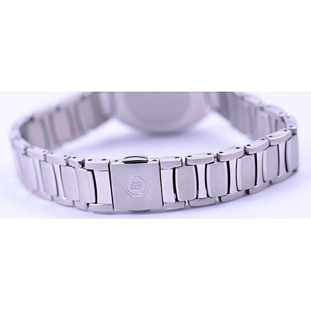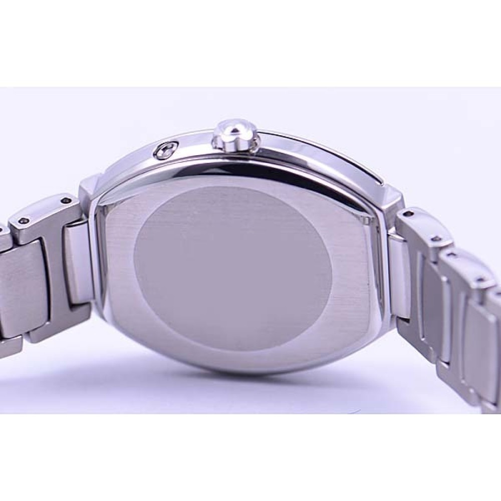 CITIZEN EXCEED ES8140-50A - ladies watch made by Citizen. It has Japanese solar quartz movement and 8845 calibre. Titanium, hard coating case of tonneau shape. Case dimensions are 25 mm. in diameter and 7.5 mm. in thickness. The dial of this Citizen watch is white. Display type: analog. This timepiece has sapphire, super clear coating glass. Titanium, hard coating band, band color: silver. 50 m. water resistance. The watch is from Exceed collection. The following features are equipped: antimagnetic, date, perpetual calendar, radio controlled.