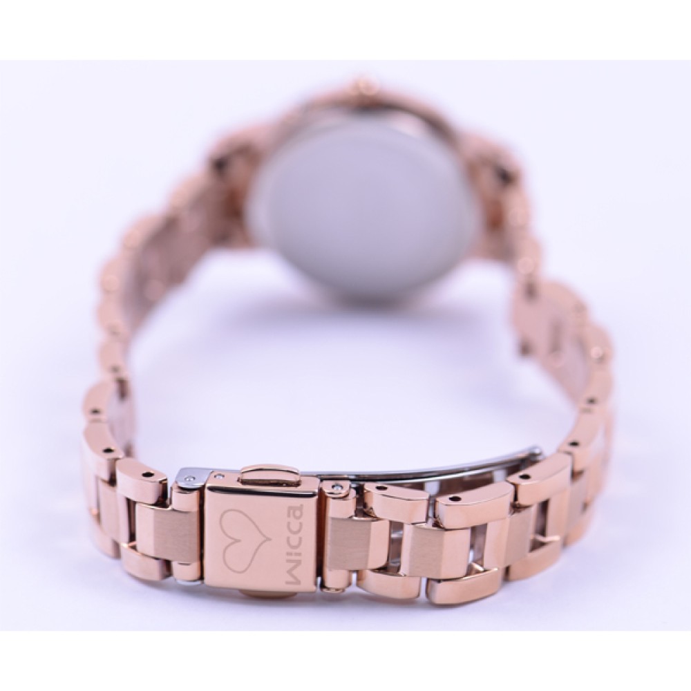 CITIZEN WICCA KL0-464-11 - ladies watch produced by Citizen. It is equipped with Japanese solar quartz movement and H0F8 calibre. Stainless steel, gold plated case of round shape. Case dimensions are 25.5 mm. in diameter and 7.2 mm. in thickness. The dial of this Citizen watch is silver, white. Display type: analog. This timepiece has mineral glass. Stainless steel, gold plated band, band color: gold. 50 m. water resistance. The watch is from Wicca collection. The following features are equipped: perpetual calendar, radio controlled, antimagnetic, date, crystal set.