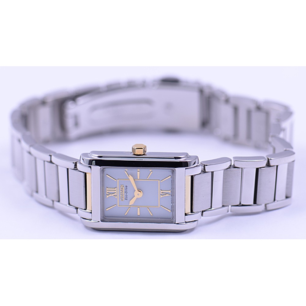CITIZEN COLLECTION FRA36-2432 - ladies watch manufactured by Citizen. It has Japanese solar quartz movement and B023 calibre. Stainless steel case of rectangle shape. Case dimensions are 18 mm. in diameter and 6 mm. in thickness. The dial of this Citizen watch is white. Display type: analog. This timepiece has mineral glass. Stainless steel band, band color: silver. 30 m. water resistance. The watch is from Citizen Collection collection.
