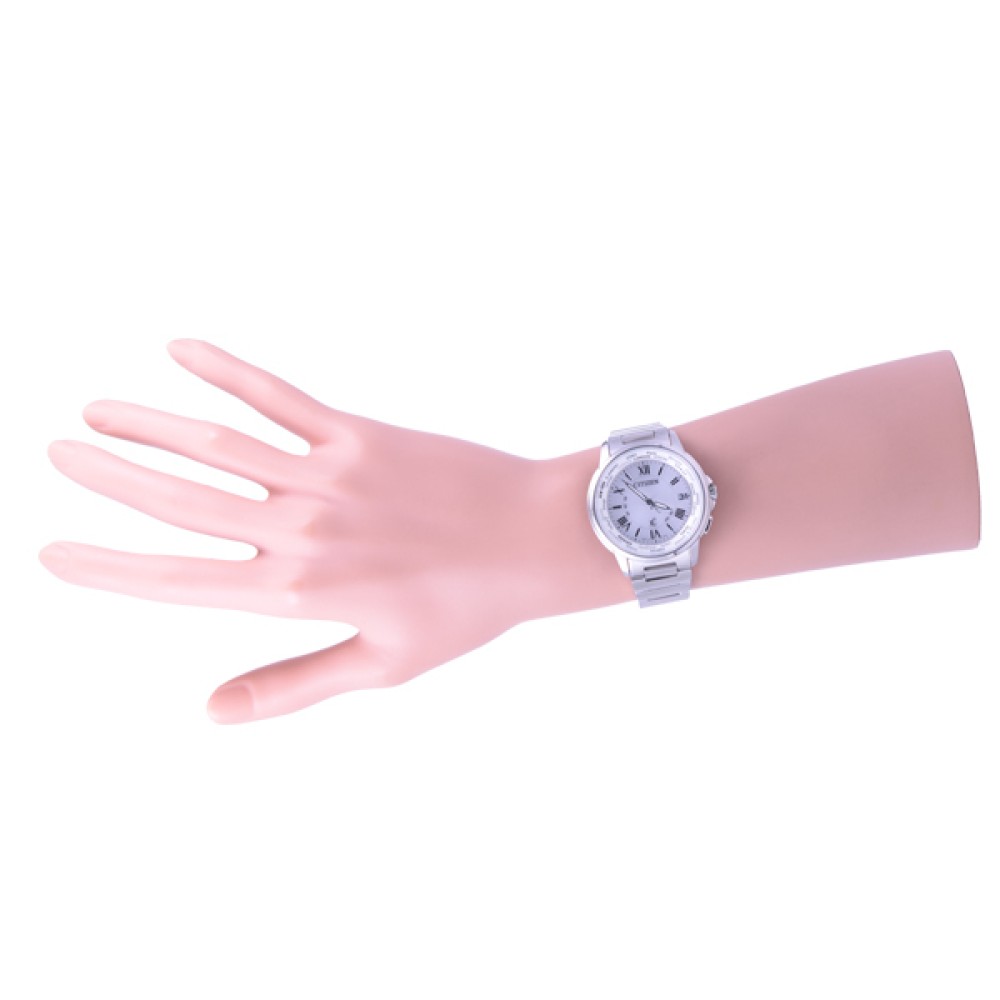 CITIZEN XC CB1020-54A - men's watch produced by Citizen. It has Japanese solar quartz movement and H149 calibre. Stainless steel, hard coating case of round shape. Case dimensions are 40 mm. in diameter and 9 mm. in thickness. The dial of this Citizen watch is silver. Display type: analog. This timepiece has sapphire, antireflection coating glass. Stainless steel band, band color: silver. 100 m. water resistance. The watch is from xC collection. The following features are equipped: radio controlled, date, world time, perpetual calendar, antimagnetic.