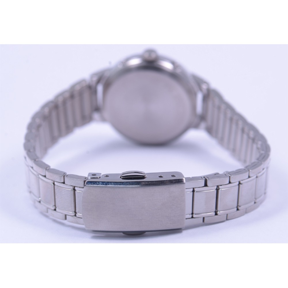 CITIZEN REGUNO KL9-119-95 - ladies watch produced by Citizen. It is equipped with Japanese solar quartz movement and H335 calibre. Stainless steel case of round shape. Case dimensions are 27.3 mm. in diameter and 8.4 mm. in thickness. The dial of this Citizen watch is white. Display type: analog. This timepiece has mineral glass. Stainless steel band, band color: silver. 100 m. water resistance. The watch is from Citizen Reguno collection. The following features are equipped: radio controlled.