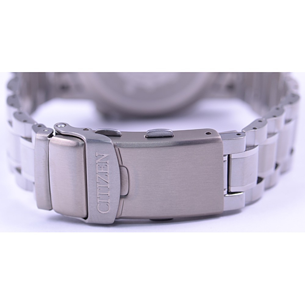CITIZEN PROMASTER SKY BY0080-57E - men's watch produced by Citizen. It is equipped with Japanese solar quartz movement and H610 calibre. Titanium, hard coating case of round shape. Case dimensions are 43.7 mm. in diameter and 13.7 mm. in thickness. The dial of this Citizen watch is black. Display type: analog. This timepiece has sapphire, antireflection coating glass. Titanium, hard coating band, band color: silver. 200 m. water resistance. The watch is from Promaster collection. The following features are equipped: date, alarm, chronograph, world time, perpetual calendar, radio controlled, antimagnetic, power reserve indicator, glowing hands, glowing markers.