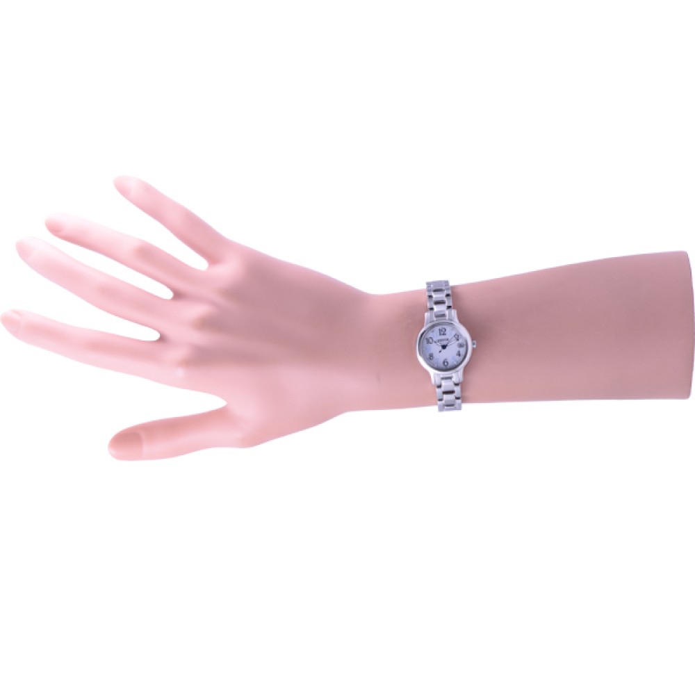 CITIZEN WICCA KH4-912-11 - ladies watch manufactured by Citizen. It is equipped with Japanese solar quartz movement and E011 calibre. Stainless steel case of round shape. Case dimensions are 24 mm. in diameter and 7.2 mm. in thickness. The dial of this Citizen watch is white. Display type: analog. This timepiece has mineral glass. Stainless steel band, band color: silver. 50 m. water resistance. The watch is from Wicca collection. The following features are equipped: date.