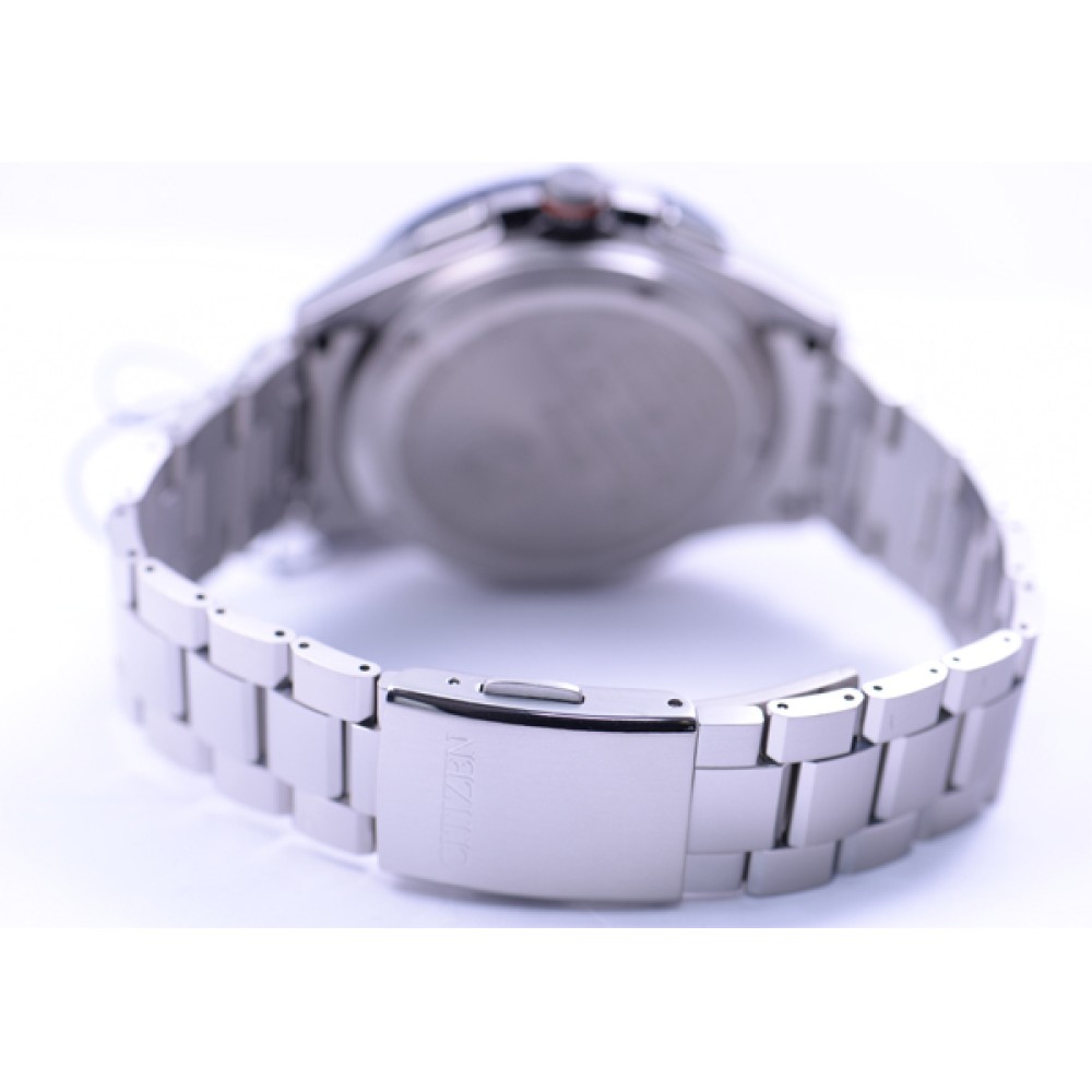 CITIZEN ECO-DRIVE BLUETOOTH BZ1034-52E - men's watch manufactured by Citizen. It has Japanese solar quartz movement and W770 calibre. Titanium, hard coating case of round shape. Case dimensions are 44.4 mm. in diameter and 14 mm. in thickness. The dial of this Citizen watch is black. Display type: analog. This timepiece has sapphire, antireflection coating glass. Titanium, hard coating band, band color: silver. 100 m. water resistance. The watch is from Eco-Drive Bluetooth collection. The following features are equipped: date, day, bluetooth, chronograph, alarm, power reserve indicator, glowing hands, glowing markers.